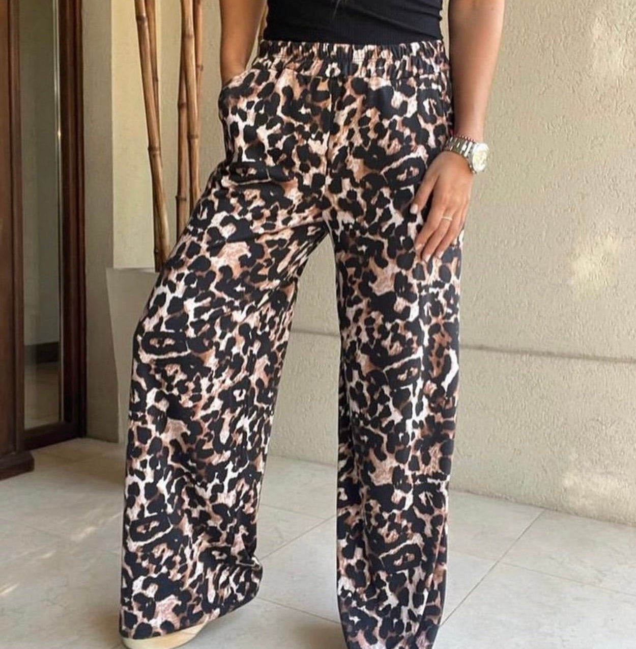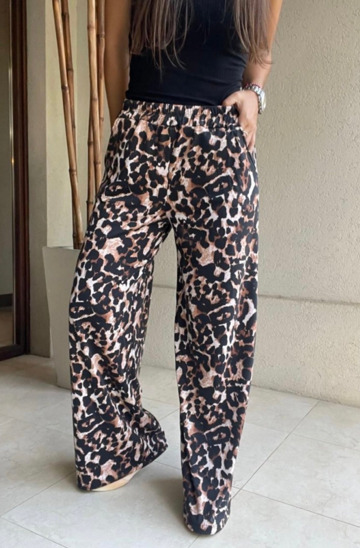 Palazzo estampados cintura elasticada, y bolsillos laterales.