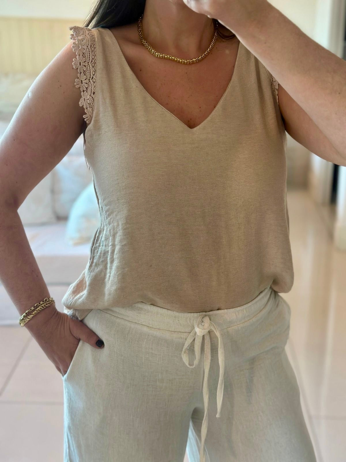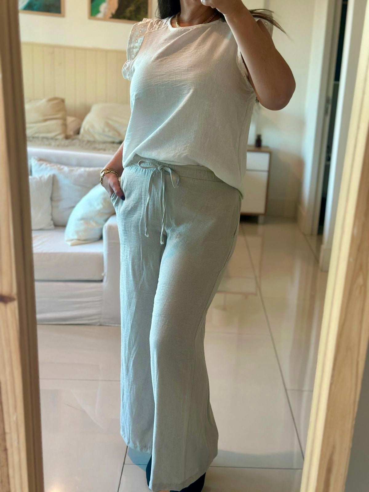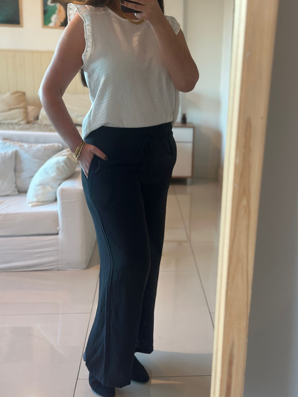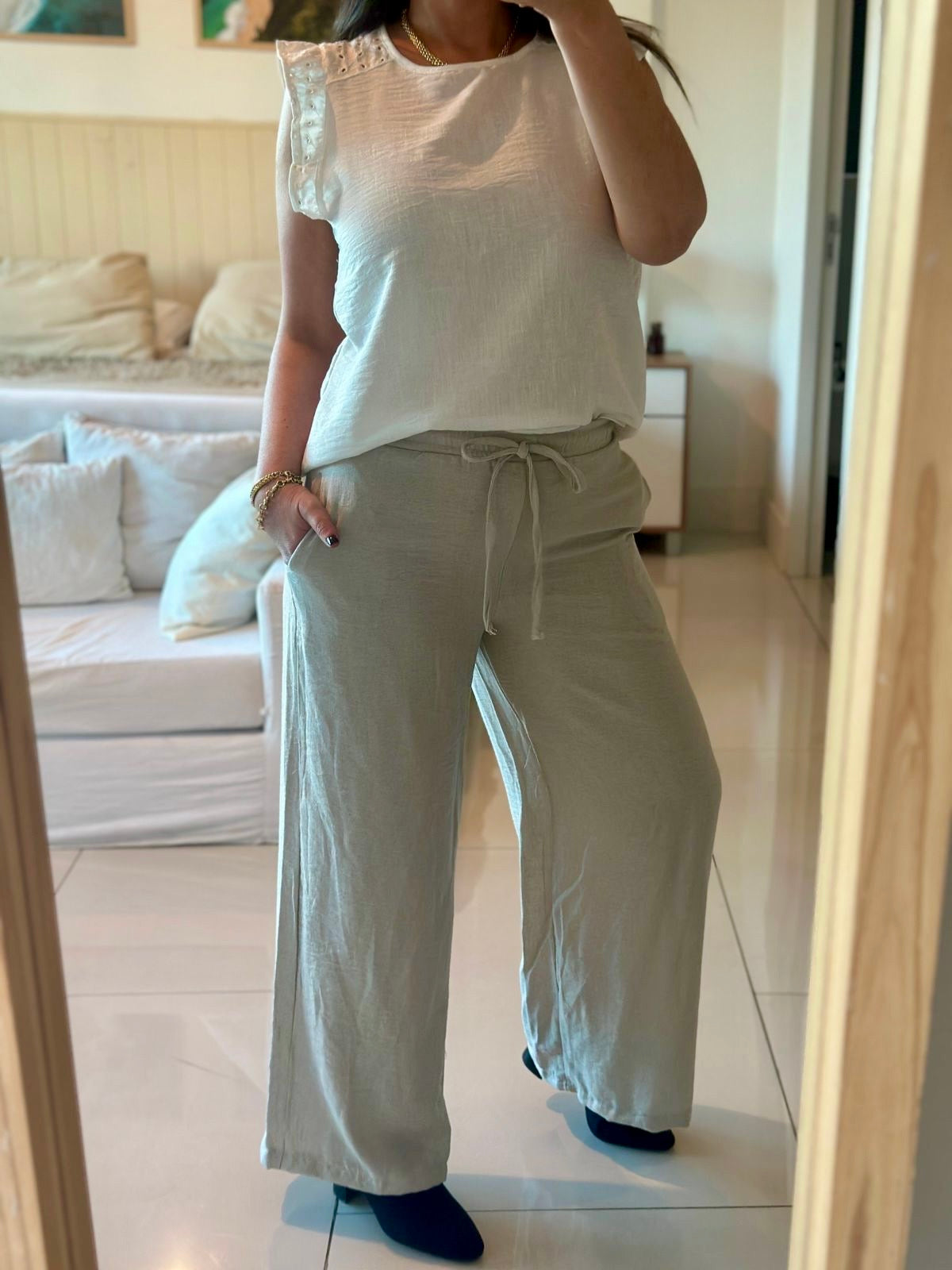 Palazzo IPANEMA, de Tela Lino, cintura elásticada